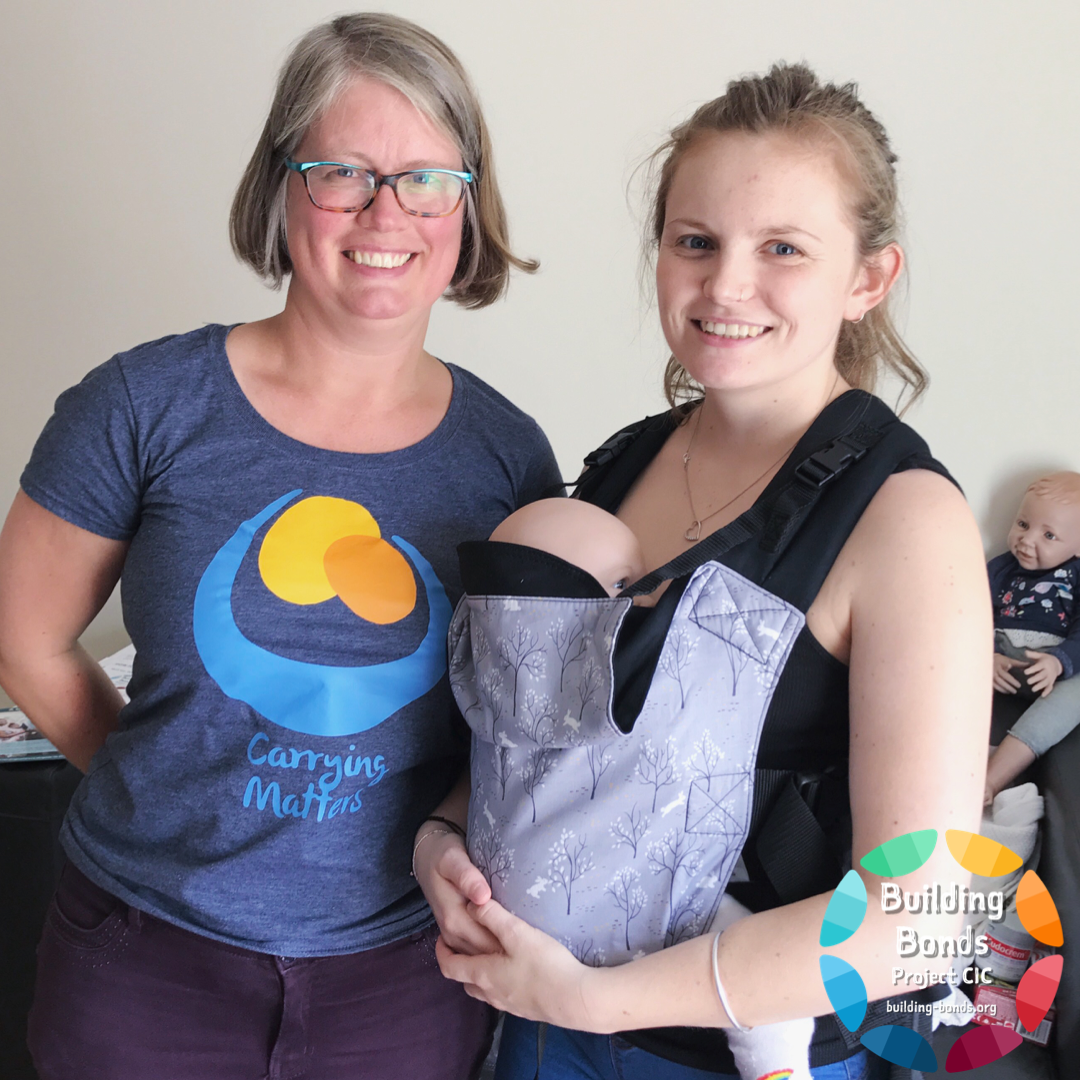 Danielle and Rosie had the enormous privilege and pleasure of visiting a special place in Sheffield -a centre for families in crisis and needing intensive social input, with two suitcases of baby carriers. We were able to explain how keeping babies close helps them to thrive despite very challenging social situations… and how they make life easier for parents too. Strong and secure attachment is important in helping families weather the storm of adverse events and helping babies to do well despite adversity… and carriers can help.